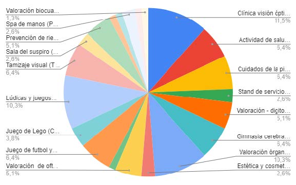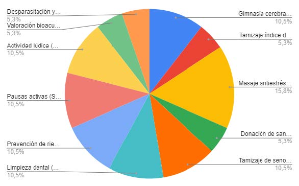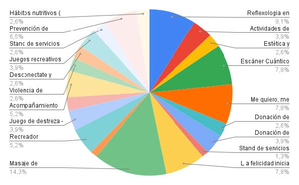 De acuerdo a la gráfica se puede apreciar que la actividad que más gustó fue masaje antiestrés en silla especial con un 15.8%