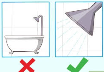 • Reduce tu ducha de 15 minutos a solo 5 minutos, esto puede ahorrar hasta 100 litros de agua por cada ducha.